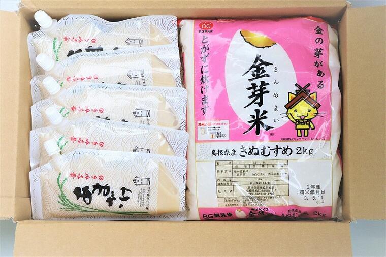 説明 名称 昔ながらのあまざけ・金芽米きぬむすめ2kgセット 詳細 【島根県産きぬむすめ 令和4年産・令和5年度産 米の食味ランキングで最高位の特Aを取得しました】 人気の高い金芽米きぬむすめと安来市産の米麹を100%使用した甘酒をセットにしました。