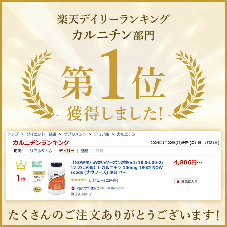 L-Carnitine 500mg 180cap NOW Foods 生産国: アメリカ 区分: 食品 広告文責: ㈱ REAL MADE 050-3138-5220 配送元: CMG Premium Foods, Inc. 痩身 痩せる 低糖質 糖質 diet ケトン けとん だいえっと シェイプアップ しぇいぷあっぷ すっきり スッキリ うえすと ウエスト ひっぷ ヒップ 燃焼 水着 なつ 夏 人気 にんき おすすめ お勧め オススメ ランキング上位 らんきんぐ 海外 かいがい さぷりめんと 健康 けんこう へるしー ヘルシー ヘルス ヘルスケア へるすけあ 手軽 てがる 簡単 かんたん supplement health カルニチン ダイエット 筋肉 ボディライン スリム カルニチン 燃焼 ダイエット スリム サプリメント 外国 米国 アメリカ 海外直送 ▼ サプリ便利アイテム ▼