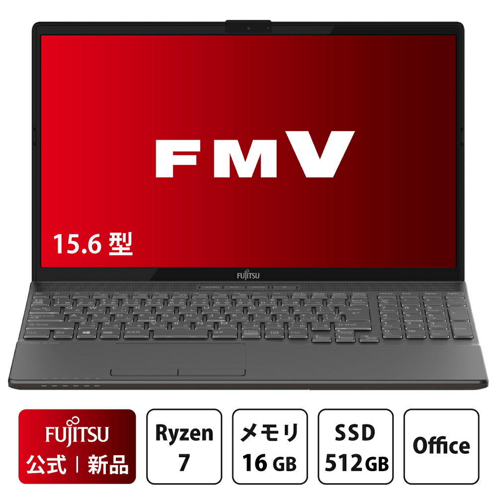 メーカー名 富士通クライアントコンピューティング株式会社 ベースモデル WEBオリジナル カラー ブライトブラック OS Windows11 Home(64bit版) CPU Ryzen 7 5700U メモリ 16GB HDD × SSD 512GB 光ディスク スーパーマルチ 液晶 15.6型(1920x1080)スーパーファイン Office ・Office Home and Business 2021(個人向け) ・Microsoft 365 Basic[1年間無料] テレビ機能 × カメラ HD Webカメラ内蔵 (有効画素数 約92万画素) 無線通信 Wi-Fi 6(1.2Gbps対応)、IEEE 802.11ax/ac/a/b/g/n準拠、MU-MIMO対応、Bluetooth v5.3準拠 バッテリ リチウムイオン45Wh 拡張I/F USB3.2(Gen2) Type-C×1 / USB3.2(Gen1) Type-A×2 / USB2.0 Type-A×1、HDMI出力、有線LAN(RJ-45)、ダイレクト・メモリースロット(SDメモリーカード対応) キーボード かな表記ありキーボード マウス × セキュリティ マカフィー リブセーフ 3年版 主な添付品 ACアダプタ 駆動時間 JEITA3.0(動画再生時)約4.9時間 JEITA3.0(アイドル時)約8.9時間 JEITA2.0 約10.3時間 サイズ 横361×奥行244×高さ27mm 質量 約2.0kg ※選択した仕様により質量は異なります。