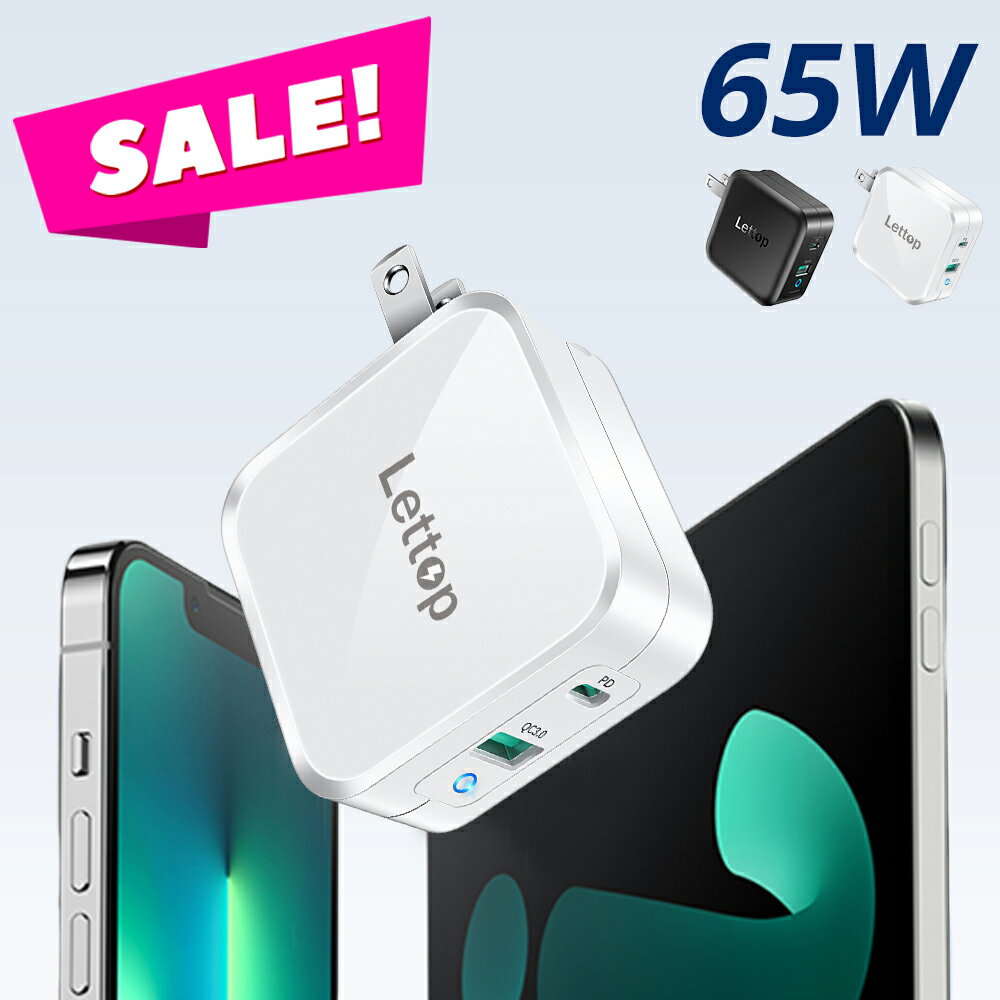 【爆安63%OFF★9,980円⇒3,680円!!】 65W 急速充電器 iphone14 アダプター 充電器 小型 2ポート Lettop スマートフォン充電器 ACアダプター usb-a type-c iPad 充電器 タイプc USB充電器 軽量 携帯充電器 iPhone MacBook タブレット ノートパソコン Switch 父の日 送料無料