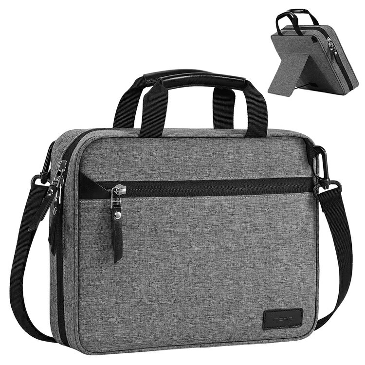 「便利なスタンド機能内蔵される」 ケース全体は適度な厚みがありながら、体積を少なくして軽量化を実現した仕上がりになっている上、メインポケットは出し入れにも安全性が高まった便利でスムーズに開け閉めできるファスナー仕様を採用し、更にデバイス収納にはPU製のホルダーも内蔵設計してあり、忙しいときにバッグの中身からデバイスを取り出さらずに、フロント側のホルダーを開けばバッグ自体がそのままスタンドを立てかけて、動画視聴や、仕事タイピングなどを快適に行えるようになります。