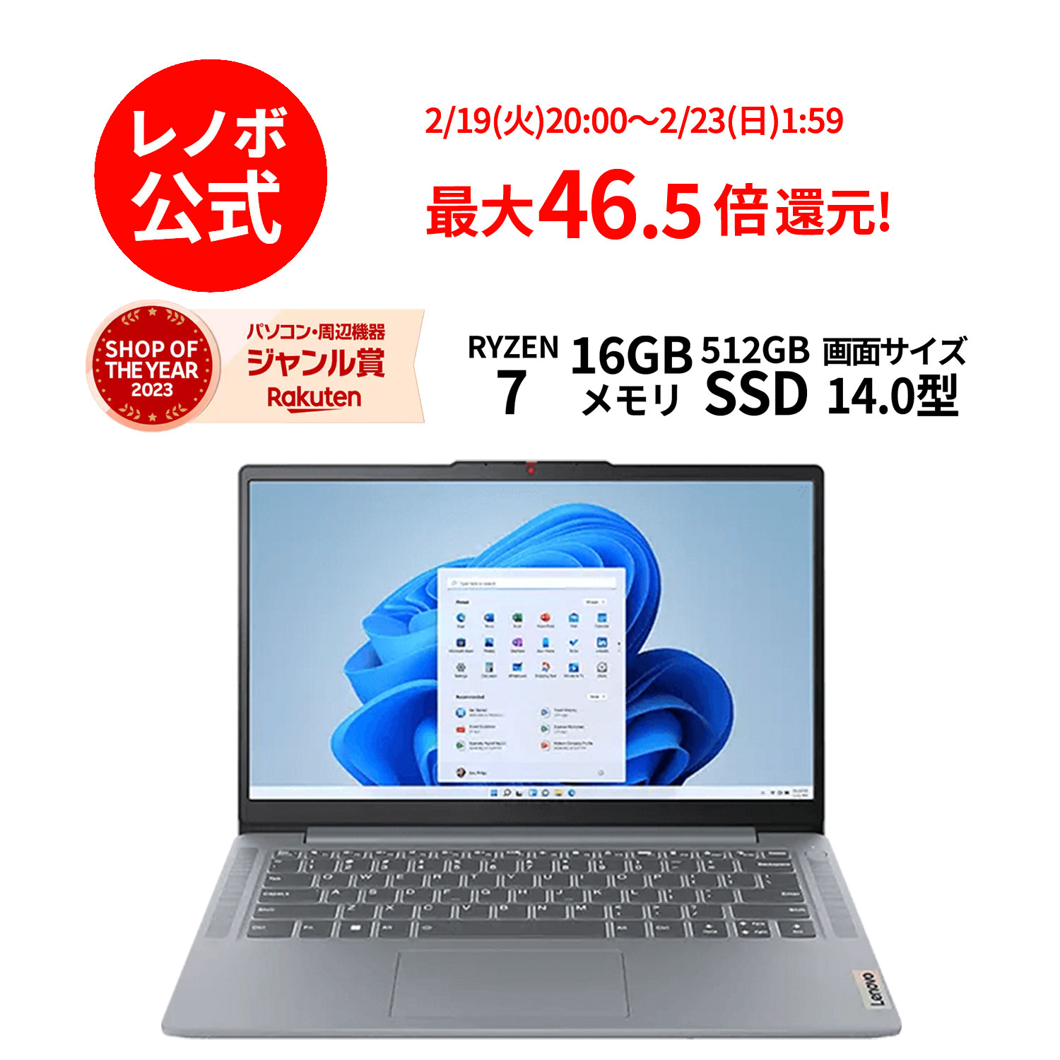 【P10%+最大P26倍】【短納期】【公式・直販】ノートパソコン 新品 Lenovo IdeaPad Slim 3 Gen 8 14インチ FHD IPS液晶 AMD Ryzen 7 7730U メモリ 16GB SSD 512GB Windows 11 送料無料 1年 3年 保証選択可