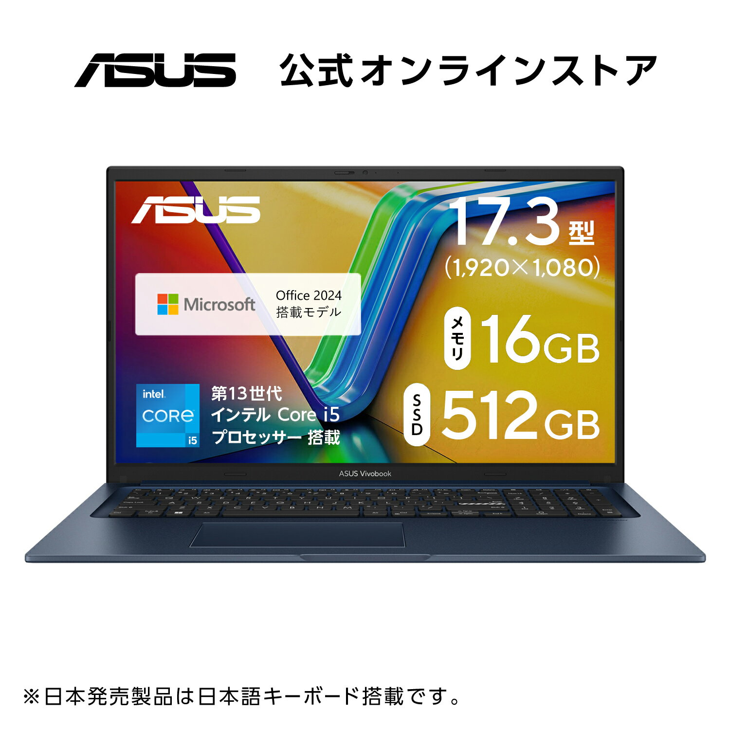 製品名 ASUS Vivobook 17 X1704VA 型番 X1704VA-I5165WS 本体カラー クワイエットブルー OS ※1 Windows 11 Home 64ビット CPU CPU名:インテル Core i5-1334U プロセッサー 動作周波数:P-core 最大4.6GHz (2コア) / E-core 最大3.4GHz (8コア) キャッシュメモリ:インテル スマート・キャッシュ 12MB メインメモリ 標準/最大 ※2:16GB/16GB 仕様:DDR4-3200 スロット:SODIMMスロット×1 (空き×0) + オンボードメモリ8GB 表示機能 ディスプレイ:17.3型ワイドTFTカラー液晶 表面仕様:ノングレア 解像度:1,920×1,080ドット (60Hz) 視野角:水平170°/垂直170° タッチパネル:非搭載 グラフィックス機能:インテル Iris Xe グラフィックス (CPU内蔵) ビデオメモリ ※3:メインメモリと共有 外部ディスプレイ出力 ※4:最大4,096×2,160ドット 記憶装置 SSD ※5:512GB (PCI Express 4.0 x4接続 NVMe/M.2) サウンド機能 サウンド規格:ハイ・デフィニション・オーディオ準拠 スピーカー:ステレオスピーカー内蔵 (2W×2) マイク:アレイマイク内蔵 Webカメラ 92万画素Webカメラ内蔵 (プライバシーシャッター付) 通信機能 LAN:- 無線LAN ※6:IEEE802.11a/b/g/n/ac/ax (Wi-Fi 6E) Bluetooth® 機能:Bluetooth® 5.3 入力機能 キーボード:105キー日本語キーボード (イルミネートキーボード) (JIS配列) ポインティングデバイス:マルチタッチ・タッチパッド インターフェース ディスプレイ出力:HDMI×1 USBポート:USB3.2 (Type-C/Gen1) ※7×1、USB3.2 (Type-A/Gen1) ×2、USB2.0×1 カードリーダー:- オーディオ:マイクロホン/ヘッドホン・コンボジャック×1 電源 Φ4.5/45W ACアダプター (19V/2.37A) またはリチウムポリマーバッテリー (3セル/50Wh) バッテリー バッテリー駆動時間 (JEITA測定法3.0) ※8:約4.3時間 (動画再生時) / 約7.9時間 (アイドル時) バッテリー充電時間:約1.8時間 消費電力 消費電力:最大約45W エネルギー消費効率 ※9:12区分 15.2kWh/年 (AAA) 質量 サイズ (突起部除く):幅399.3mm×奥行き254.3mm×高さ19.9~20.68mm 質量:約2.1kg 保証期間 本体:購入日より12ヶ月間のインターナショナル保証+購入日より12ヶ月間のASUSのあんしん保証 (日本国内保証・要登録) ※10 バッテリーおよびACアダプター:購入日より12ヶ月間の日本国内保証 ビジネス統合アプリ Microsoft 365 Basic (1年間使用権) ※11 + Office Home & Business 2024 (デジタルアタッチ版) ※12 Xbox Game Pass PC Game Pass (3ヶ月利用権) ※13 主な付属品 ACアダプター ※13、製品マニュアル、製品保証書 備考 ※1. プリインストールされているOS以外はサポート対象外となります。