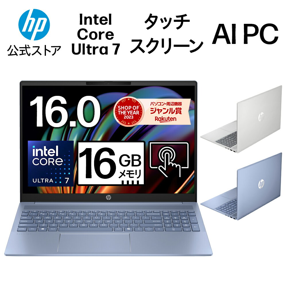 スペック モデル HP Pavilion 16-af0000 シリーズ パフォーマンスモデル オペレーティングシステム Windows 11 Home プロセッサー インテル® Core™ Ultra 7 プロセッサー 155U (最大 4.80GHz, インテル®スマート・キャッシュ 12MB) カラー ナチュラルシルバー / スカイブルー メモリ 16GB オンボード (7467MHz, LPDDR5x) ストレージ 512GB PCIe® Gen4 NVMe™ M.2 SSD オプティカルドライブ なし Webカメラ HP True Vision 1080p フルHD IR カメラ (約207万画素) ネットワークコントローラー なし 内蔵無線LAN IEEE 802.11ax (Wi-Fi 6E)、Bluetooth 5.3 グラフィックスタイプ インテル® グラフィックス (プロセッサーに内蔵) ビデオメモリ メインメモリと共有 ディスプレイタイプ(液晶表示最大解像度/アスペクト比/輝度) 16.0インチ・WUXGA・IPSタッチディスプレイ (1920×1200 / 16:10 / 300nit) 外部ディスプレイ 最大 3840×2160 ポインティングデバイス イメージパッド (タッチジェスチャー対応) メディアカードスロット なし キーボード バックライトキーボード (日本語配列、テンキー付き) インターフェイス HDMI 2.1出力端子 ×1、SuperSpeed USB Type-A 10Gbps ×1、SuperSpeed USB Type-A 5Gbps ×1、SuperSpeed USB Type-C® 10Gbps ×2 (Power Delivery、DisplayPort™ 1.4、電源オフUSBチャージ機能対応)、ヘッドフォン出力/マイク入力コンボポート ×1 オーディオ デュアルスピーカー、内蔵デュアルマイク セキュリティ パワーオンパスワード、アドミニストレーターパスワード、TPM Windows Hello 顔認証センサー サイズ(幅x奥行きx高さ) 約 357 × 254 × 17.9 (最薄部) ー18.6 (最厚部) mm 質量 約 1.79kg ACアダプター 65W USB Type-C™ ACアダプター (動作電圧:100-240 VAC、動作周波数:50-60 Hz) 消費電力 (最大時) 最大 65W 省エネ法に基づくエネルギー消費効率 12区分 17.0kWh/年 (AAA) EPEAT® Gold with Climate+ 登録済み バッテリ リチウムイオン バッテリ (3セル / バッテリーファストチャージ機能対応) バッテリ駆動時間 最大 11時間 セキュリティソフトウェア マカフィー® リブセーフ (30日版) オフィスソフト なし / Microsoft 365 Basic 12ヶ月試用版 + Office Home & Business 2024 (デジタルアタッチ版) 主なソフトウェア HP Support Assistant、その他 主な添付品 HP 240 Bluetooth マウス(ブラック/単3電池x1)、ACアダプター、電源コード、保証書 等 標準保証 1年間 (引き取り修理サービス、パーツ保証) 使い方サポート 1年間 ※2024年11月12日にMicrosoft Office Home & Business 2021 から、Microsoft Office Home & Business 2024に変更を実施しております。