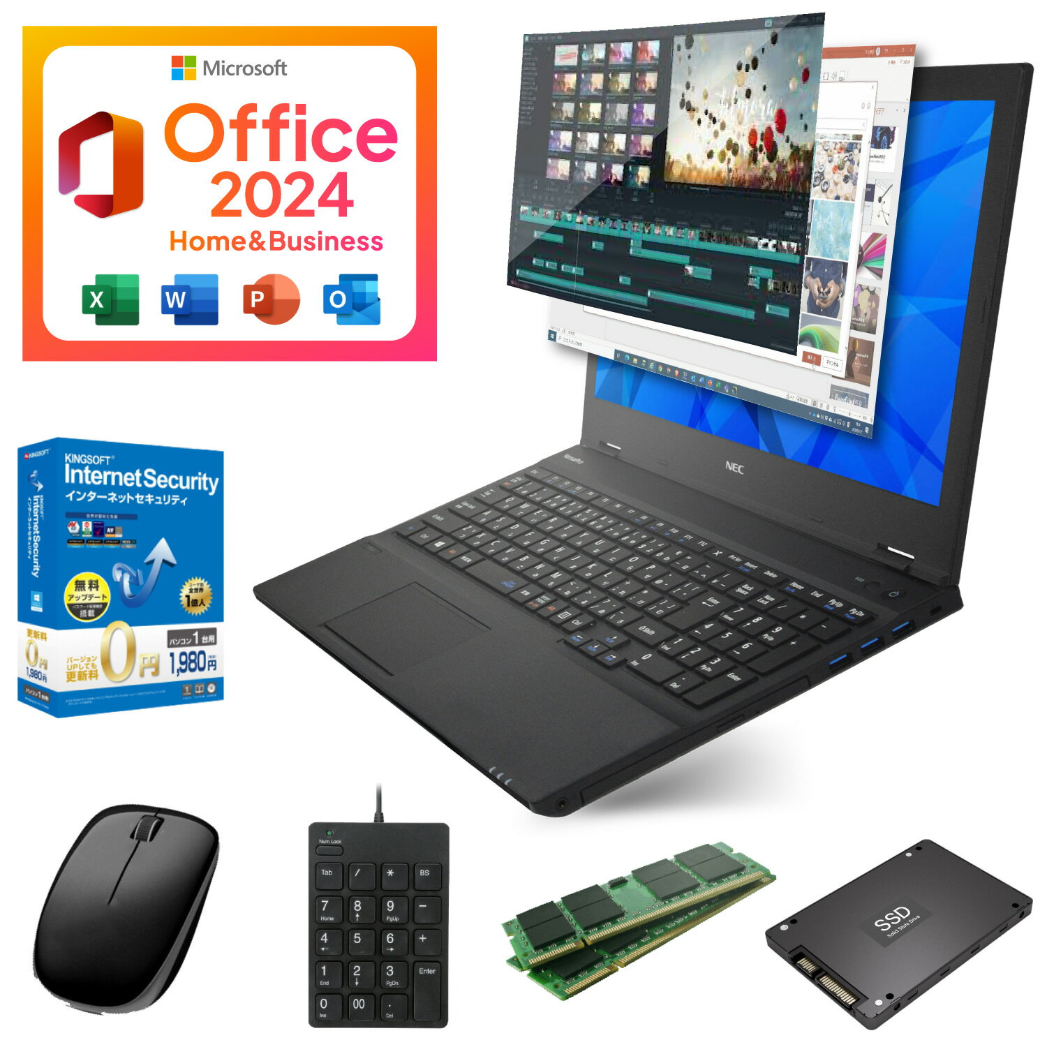 製 品 仕 様 型番 Microsoft Office 2024 H&B 付き|中古パソコン ノート Windows11 Office付き|中古PC ノートPC 中古ノートパソコン|Core i5 第8世代 メモリ 16GB SSD 1TB|WEBカメラ / テンキー / フルHD|Word Excel PowerPoint|富士通 A579 システム Windows 11 64bit CPU 第8世代 Corei5-8365U 1.60GHz メモリ 16GB ストレージ SSD 1TB(1,000GB) 液晶サイズ 15.6インチ 最大解像度 1920×1080(フルHD) 光学ドライブ DVD-ROM(DVD/CD再生専用) 外部接続端子 USB3.1(type-A)×4HDMI端子×1VGA有線LAN 無線LAN 内蔵または外付けUSB無線LANアダプタ Office Microsoft Office 2024 home&business WEBカメラ 搭載 テンキー 新品外付けテンキー付属 付属品 ACアダプター新品外付けテンキー新品無線マウスセキュリティソフト オススメポイント ★Microsoft Office 2024 H&B付き Word、Excel、PowerPointをご使用可能です。