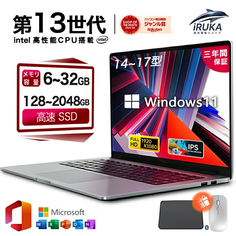 楽天ジャンル賞月間MVP★楽天ランキング1位!【三年保証】ノートパソコン パソコン 新品 Office付き Windows11搭載 14 15.6 17インチ 型 第13世代CPU intel N3450 Core i7 i5 i3 i9 メモリ6~32GB SSD128GB~2TB WEBカメラ テンキー付き 大容量 大画面 zoom 軽量 初心者向け
