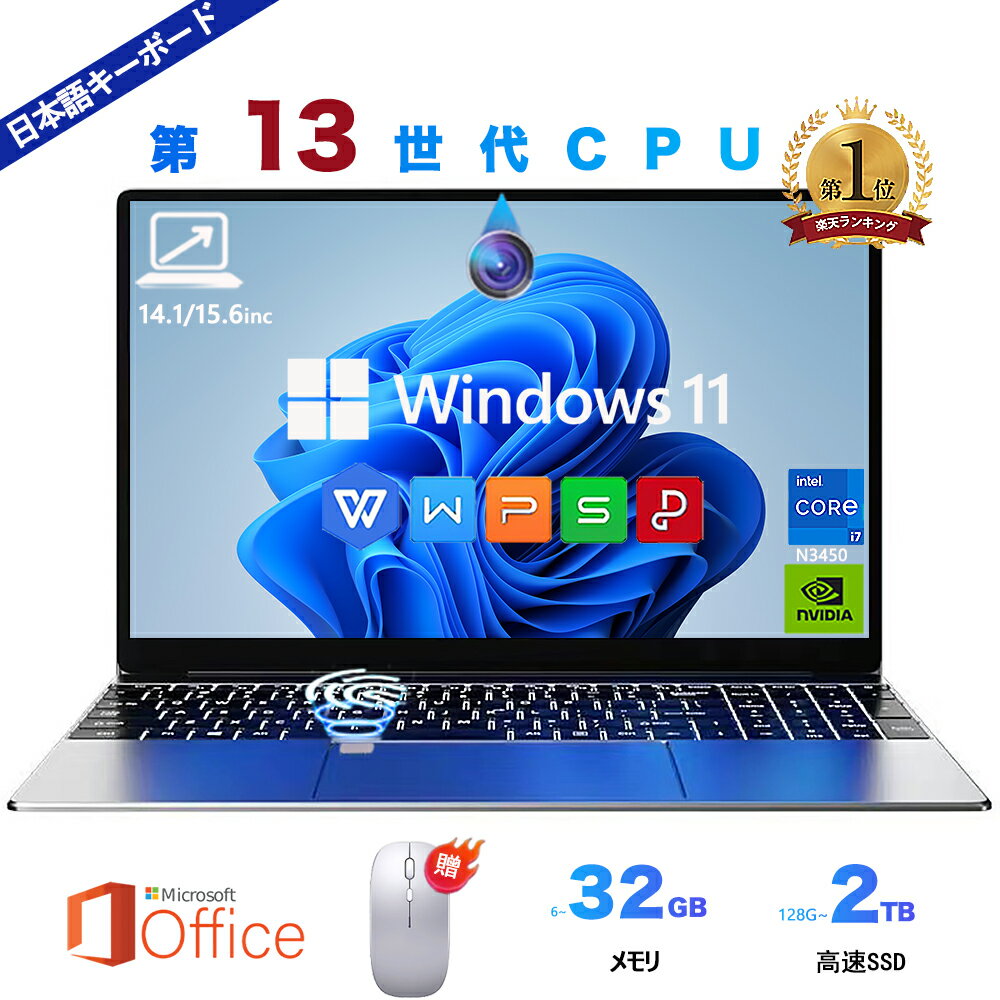 【楽天スーパーSALE 半額!】【楽天ランキング1位!】三年保証 パソコン ノートパソコン office付き 第13世代 CPU core i5 i7 celeron N3450 14.1/15.6型 フルHD液晶 高性能メモリ 6~32GB SSD 128GB~2TB 指紋認証 冷却ファzン 初期設定済 Windows11 ノートPC