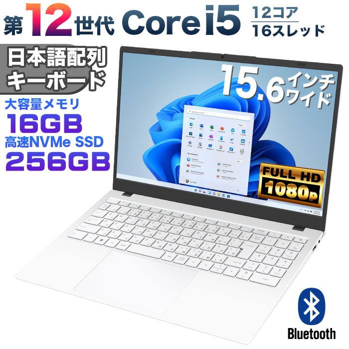 【新品】Intel 第12世代 Core i5 1240P [ホワイト] Windows11 ノートパソコン 15.6インチワイド液晶 フルHD メモリ16GB LPDDR5 SSD500GB USB3.0 HDMI WEBカメラ Bluetooth JIS・日本語配列キーボード ISO9001認定工場生産 NC15J【DC接続】