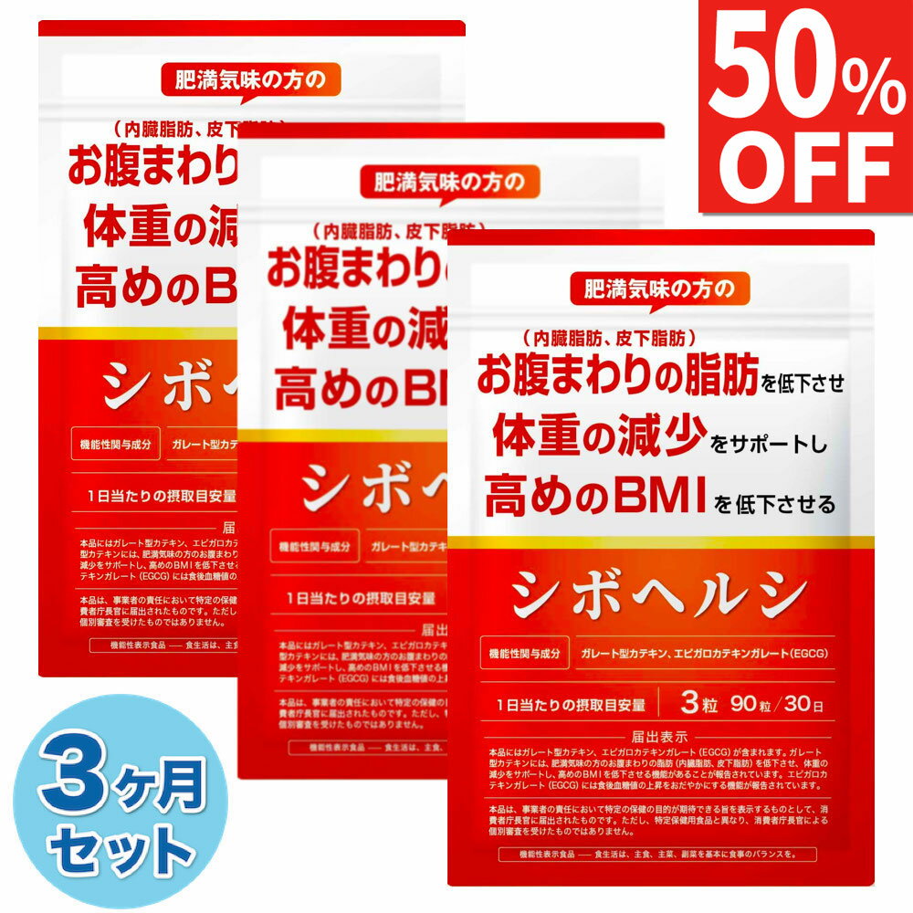 【50%OFF】 3ヶ月セット(90日分) ダイエットサプリ お腹の脂肪を減らす 内臓脂肪 皮下脂肪 低下 体重の減少 サポート 高めのBMI 低下 食後 血糖値 上昇 おだやかにする 下げる ダイエット サプリ カテキン シボヘルシ 送料無料 機能性表示食品
