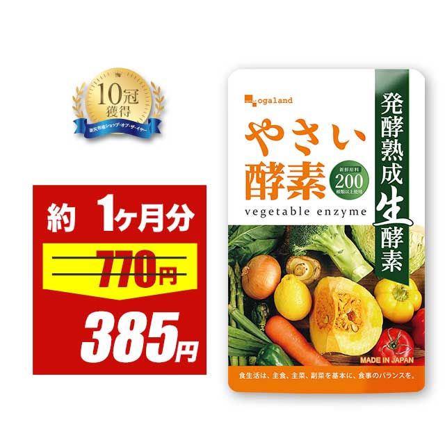 \ありがとうございます!楽天デイリーランキング1位獲得!!/ ダイエット・健康ジャンルで1位獲得!※2022年12月13日(火)更新(集計日:12月12日) 商品名・内容量 やさい酵素 370mg×30粒(約1ヶ月分) 名称 植物発酵エキス加工食品 原材料 食用なたね油(国内製造)、植物発酵エキス末(デキストリン、植物発酵生成物)、植物発酵エキス末<難消化性デキストリン、植物発酵エキス(黒糖、リンゴ、玄米麹、その他)>、植物発酵エキス末<デキストリン、植物発酵エキス(糖蜜、黒砂糖、ヨモギ、ウコン、その他)>、植物発酵エキス末<コーンスターチ、植物発酵エキス(加工黒糖、大根、ニンジン、その他)>、アマニ油、えごま油、穀物発酵エキス末(マルトデキストリン、穀物発酵抽出物)、植物発酵エキス(黒砂糖、プルーン、ヨモギ、その他)/ゼラチン、グリセリン、乳化剤、ミツロウ、シクロデキストリン、(一部に小麦・オレンジ・カシューナッツ・キウイフルーツ・ごま・大豆・バナナ・もも・やまいも・りんご・アーモンドを含む) ※商品は原料由来の為、製造時期により色合いが多少異なる場合がございます。