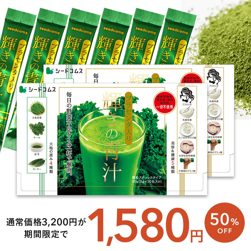 【4/4 20:00~★タイムセールで50%OFF×ポイント15倍】輝きの青汁 プラセンタ入り 60包入り 青汁 プラセンタ 大麦若葉 抹茶 乳酸菌 オリゴ糖 食物繊維 ビタミンC カルシウム ミネラル 飲みやすい ダイエット 美容 健康 野菜不足