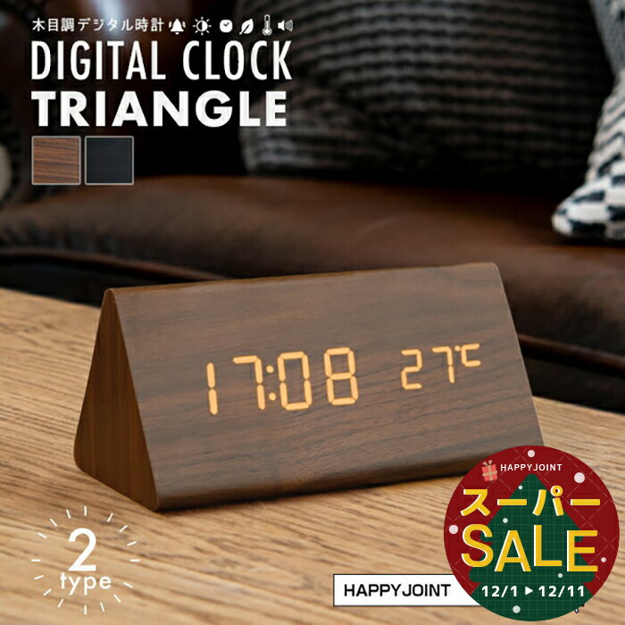 【スーパーセール 16%OFF 】デジタル時計 おしゃれ 置き時計 木目調 デジタルクロック TRIANGLE 〔置時計 卓上 時計 目覚まし時計 日付 新生活 デジタル クロック アラーム アラームクロック かわいい デザイン LED 光る シンプル インテリア 〕