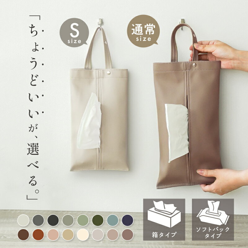 サイズ 《ボックスティッシュタイプ》 縦:約 35cm 横:約 18cm 《パックティッシュタイプ:Sサイズ》 縦:約 28cm 横:約 16.5cm カラー 《ボックスティッシュタイプ》 グレー キャメル ブラック ブラウン ライトブルー ※ライトブルーは、インテリアにも馴染みやすいスモーキーなお色です。