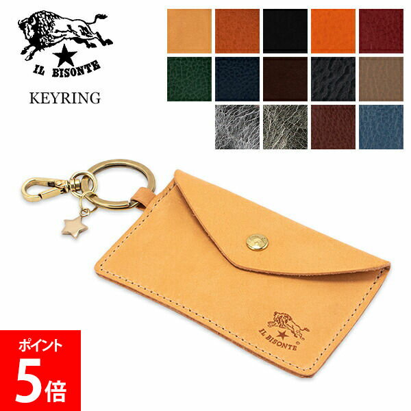 \BF期間ポイントUP/ イルビゾンテ Il Bisonte キーリング付き カードケース C0928.. KEYRING P カード入れ レザー 本革 プレゼント用 キャッシュレス ファッション