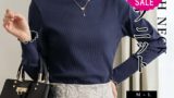 【Design/Styling】冬らしい表情のアラン柄にカジュアルなボーダーを組み合わせた、柔らかな’ベビモコ’のニットシリーズです。