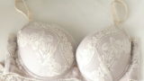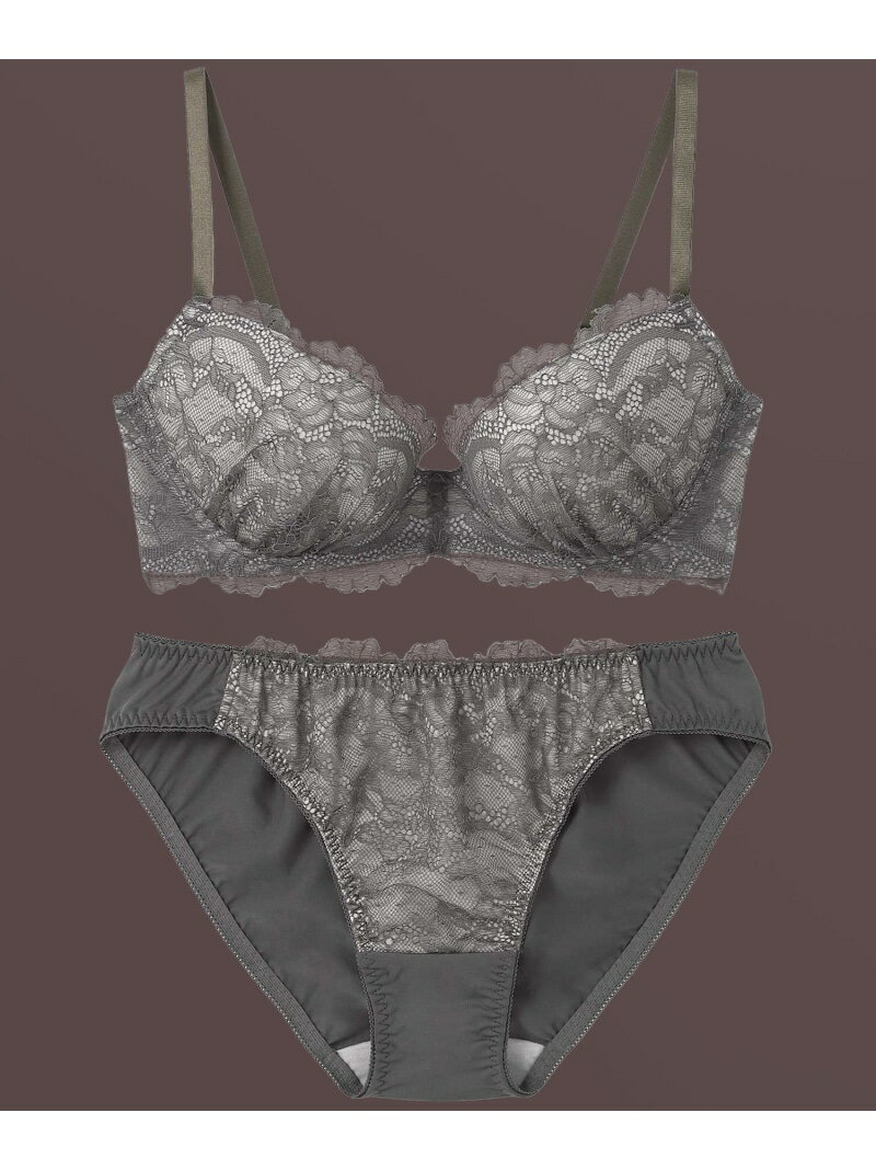 繊細なラッセルレースをカップ表と土台部分に使用した、まる胸メイクのブラジャー。