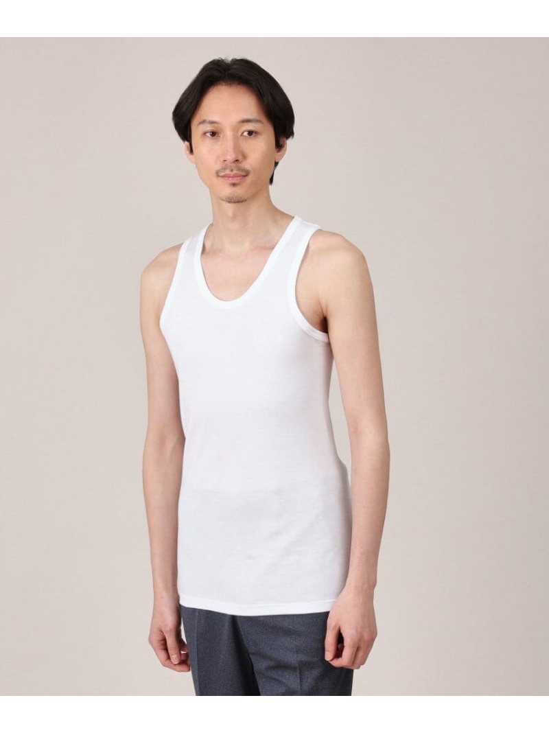 シャツのインナーとして、ビジネスシーンにも活躍するベーシックタンクトップ。