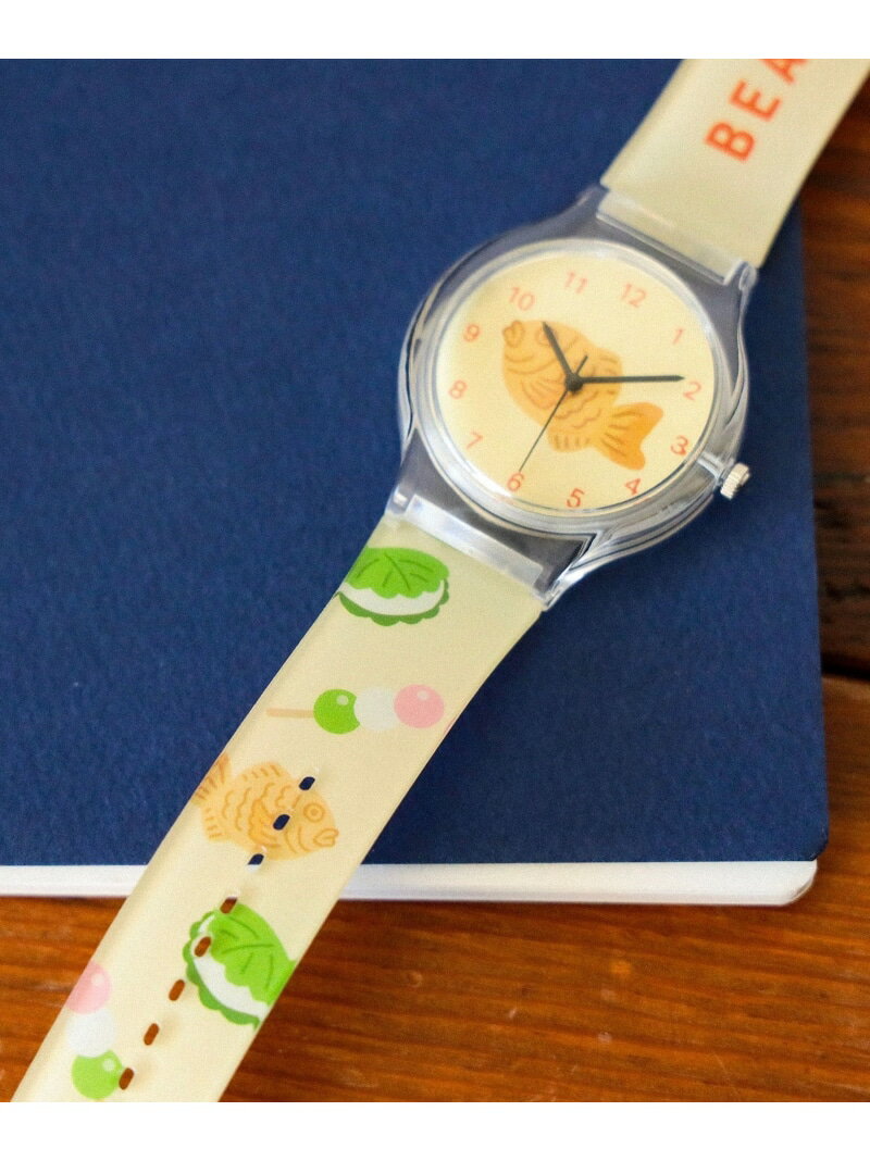 ポップな「和テイスト」のイラストを文字盤とベルトにあしらった腕時計です。