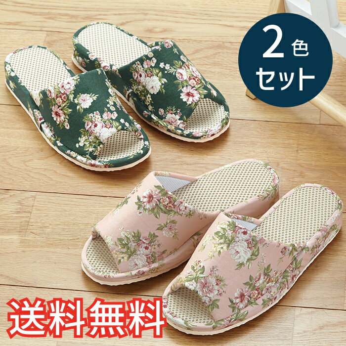【送料無料】 ヒールアップ スリッパ ローズガーデン 2色セット ピンク ブルー 室内用 2足 ルームシューズ 室内履き おしゃれ かわいい 花柄 バラ EVA メッシュ 生活雑貨 日用雑貨 清潔 快適 ギフト プレゼント プラン堂 エレガントなバラの花柄。