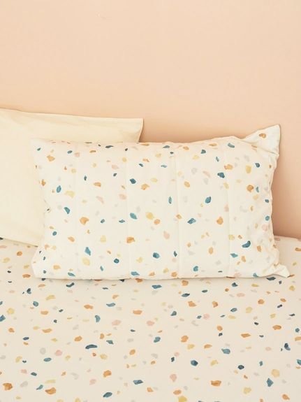 【Design/Styling】ランダムに散らばる石をイメージした、涼しげなテラゾー柄のピローケースです。