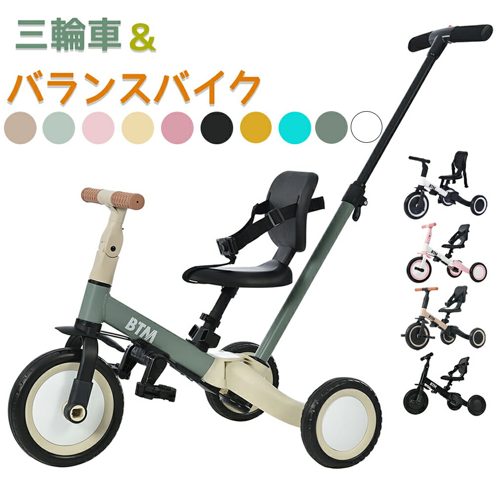 【スーパーSALE10%OFF〜】三輪車 子供 5in1 5way バランスバイク 足けりバイク ベビーカー 手押し棒 BTM 子供用三輪車 3輪 出かけ お散歩 ペダル付き 安全ベルト付き コントロールバー付き かじとり 三輪車 1歳 自転車 乗用玩具 軽量 K