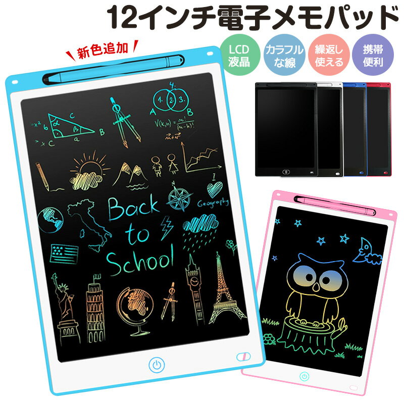 レビュー投稿&報告で後日プレゼントをゲット!!詳しくはこちら-商品詳細-■商品名:12インチ電子メモパッド■サイズ:285*190*5mm■カラー:ブラック、ホワイト、ブルー、レッド、ホワイト×ピンク、ホワイト×ブルー■重量:170g■材質:プラスチック+LCDスクリーン■液晶:フレキシブルLCDパネル 傷防止フィルム■バッテリー:ボタン電池1個(装着済み)■入力圧力:100-200g■製品内容:電子メモパッド×1、ペン×1、取扱説明書×1※ご注意事項※ボタンを押しても消せなくなったら電池交換してください。