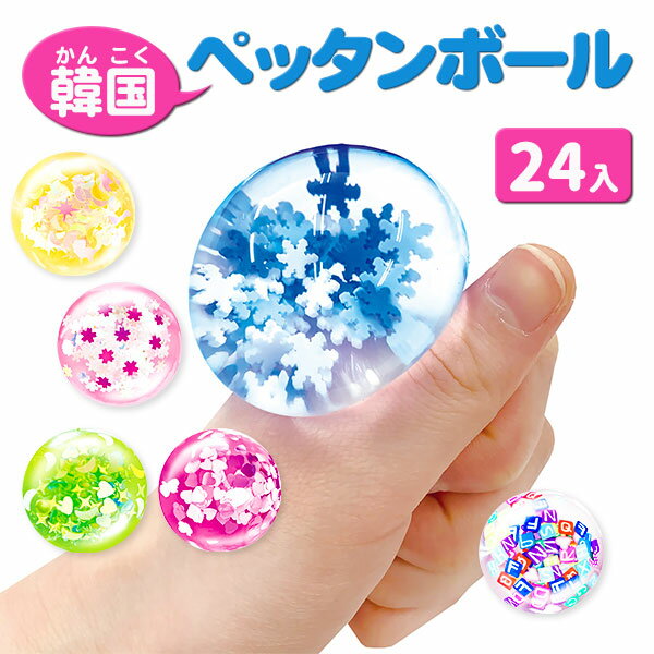 【商品サイズ】 約φ5cm 【主な仕様】 24ヶ1セット|材質:TPR PET PVC 水 【商品説明】 カラースプレーチップが入った「韓国ペッタンボール」です。