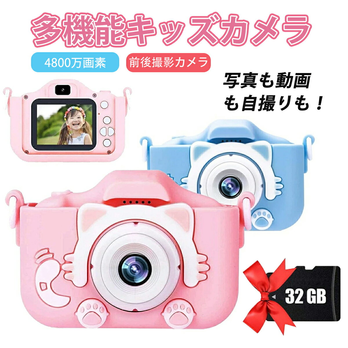 【32GB SDカード付き・便利なUSB充電式】この子供用カメラは32GBのSDカードを付きます。