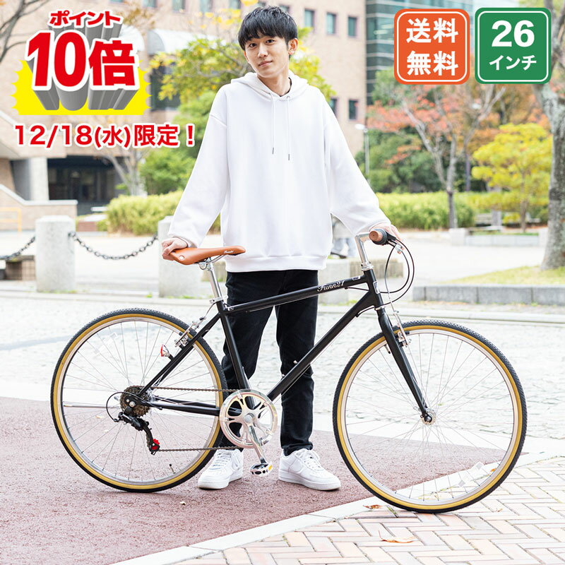 【★10倍ポイントアップ★最大42倍 12/18限定】 クロスバイク シマノ製6段変速 26インチ |鍵・ライト付き 軽量 自転車 じてんしゃ 本体 シマノ shimano シティサイクル スポーツ メンズ レディース 送料無料 【FUCL266】
