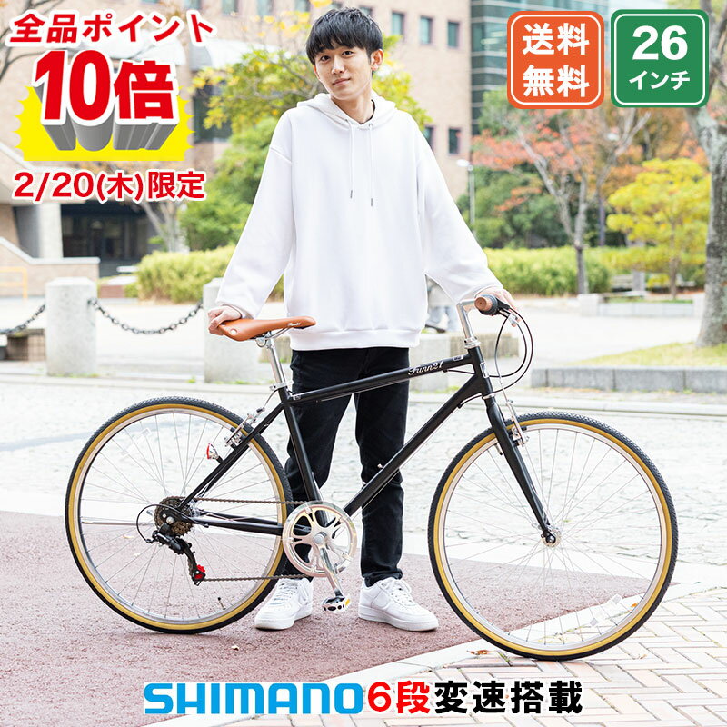 【★抽選&エントリーで2人に1人 最大1万P★店内全品P10倍★20日限定】 クロスバイク シマノ6段変速搭載 26インチ |鍵・ライト付き 軽量 自転車 じてんしゃ 本体 シティサイクル スポーツ メンズ レディース shimano変速機搭載 送料無料 【FUCL266】