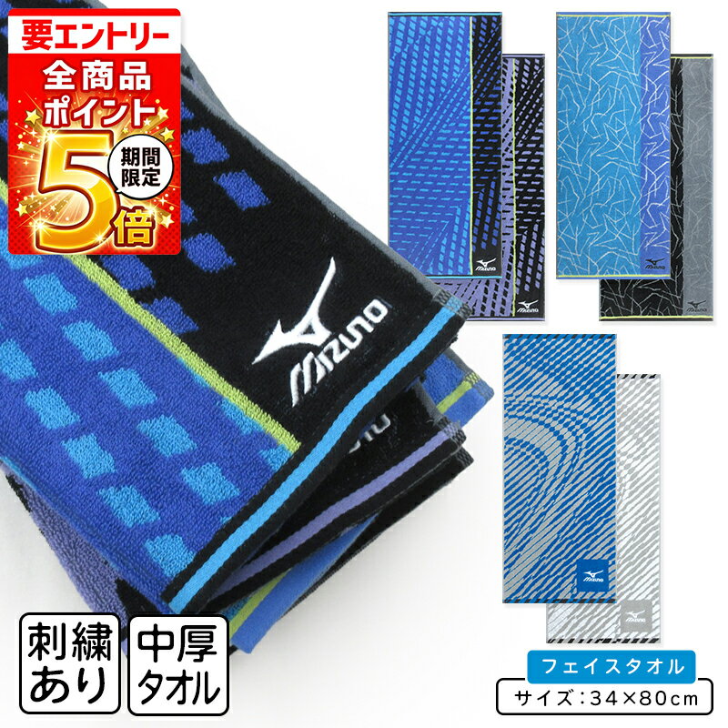 【エントリーで最大P9倍 10日1:59まで】ミズノ mizuno フェイスタオル 34×80cm 綿100% 両面パイル ジャガードタオル P4955 P4956 手拭き 顔拭きタオル 首にかけて 汗拭きタオル として大活躍 スポーツタオル[ft1s][fts]【メール便OK】