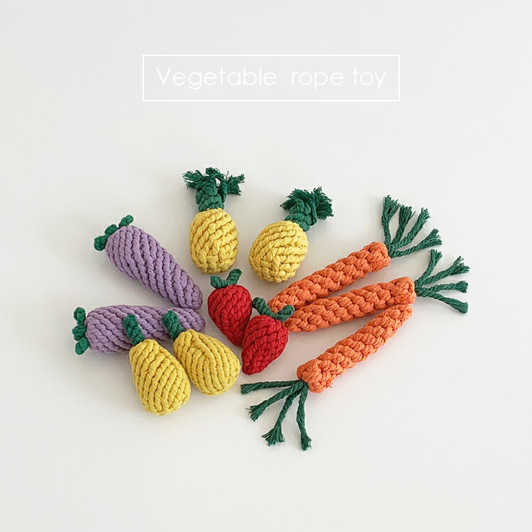 野菜と果物が集りました! ロープ トイ 「噛む」「引っ張る」「投げる」遊びが大すきなわんちゃんが喜ぶロープトイ。