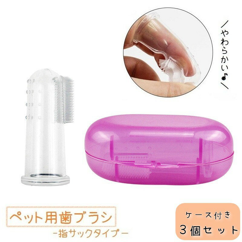 送料無料 ペット用歯ブラシ 収納ケース付き 同色3個セット 指サックタイプ 歯ブラシ 指歯ブラシ 口腔ケア 犬 猫 ドッグ キャット ペット用品 ペットグッズ ソフト やわらかい シリコン 歯磨き 透明 クリア お手入れ グルーミング 便利 シンプル