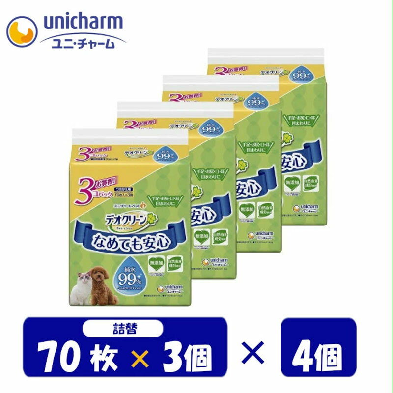 内容なめても安心 ペット用ウェットティッシュ 70枚×3個パックセット 4個入事業者ユニ・チャーム株式会社備考※画像はイメージです。