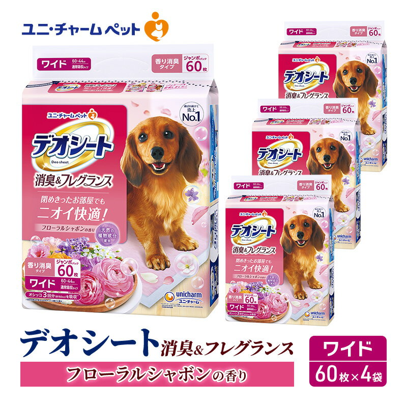 【ふるさと納税】【期間限定】生活応援価格 デオシート 消臭&フレグランス フローラルシャボンの香り ワイド 60枚×4 ペットシーツ ペットシート トイレ 犬 犬用トイレ ペット 清潔 ユニ・チャーム 愛犬用 ペット用品