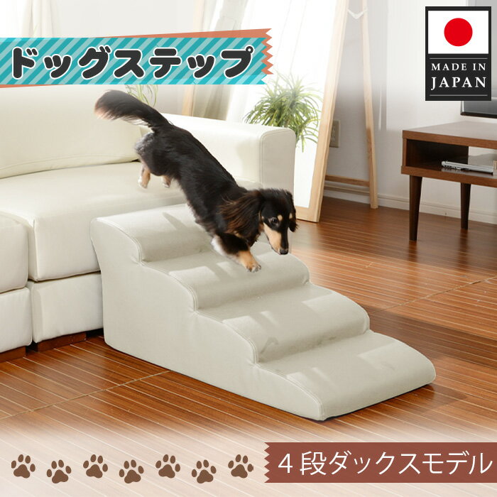 製品仕様 名称 ドッグステップ 4段(アイボリー)A387 規格・内容量 サイズ(cm):約幅41×奥行81×高さ34、重量約3.5kg 発送時期 通年 商品説明 胴長・短足の代名詞になるくらいユニークな体型のミニチュアダックスフンド。
